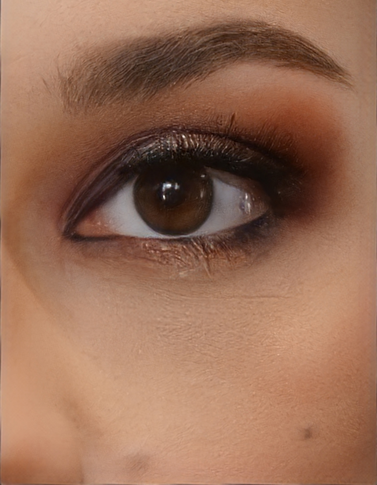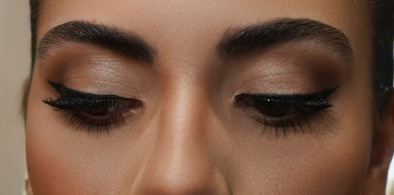 Ojos: Cambia ligeramente la forma del ojo levantándolo y alargándolo para crear una forma más almendrada. Simultáneamente se levanta la cola de la ceja para que no baje creando un arco.